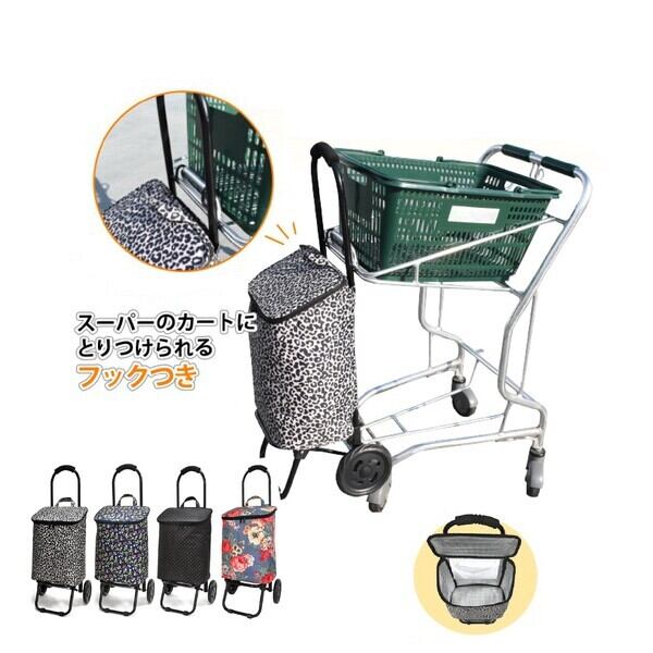 保冷 保温 ショッピングカート 折りたたみ 軽量 キャリーカート (黒ベースのドット色)