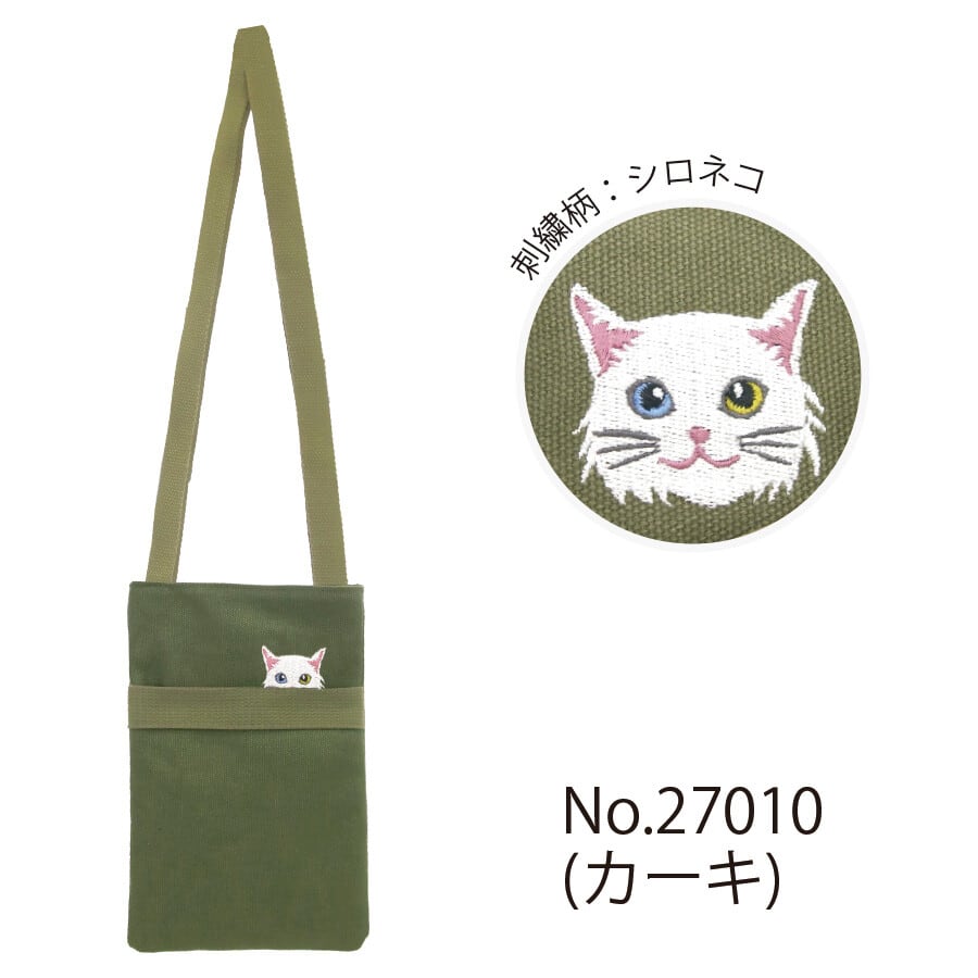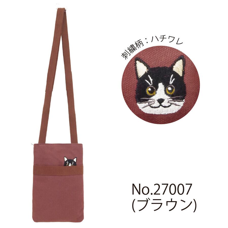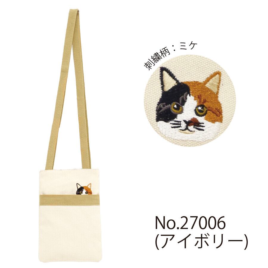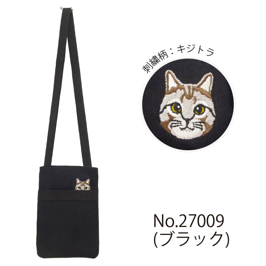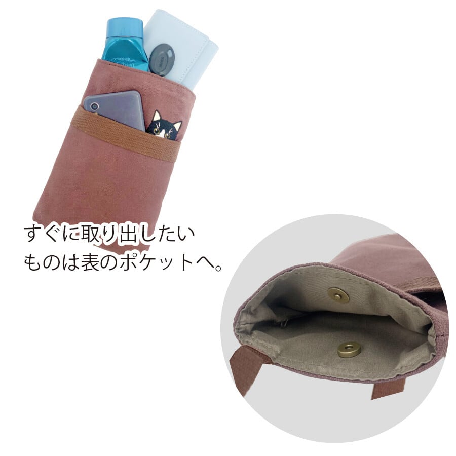 ポケットから顔をのぞかせたように見える猫刺繍がとってもキュート♪スマホが収まるぐらいのサイズ感!うちの子と一緒にお買い物やお散歩にぴったり♪